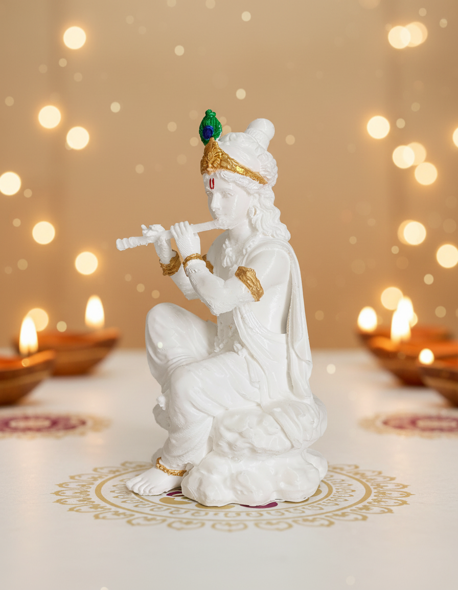 Lord Krishna Idol 3D Printed – Divine Krishna Statue for Home | Office | Car Dashboard