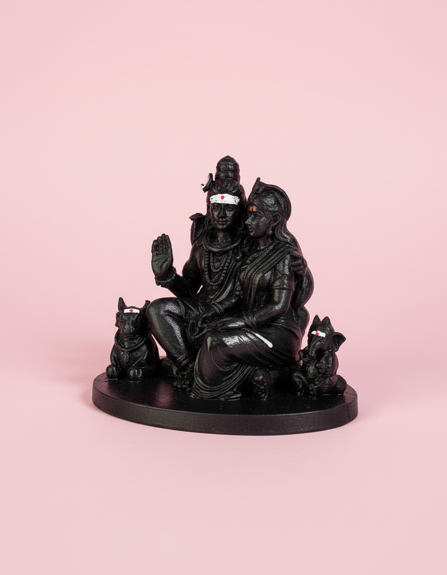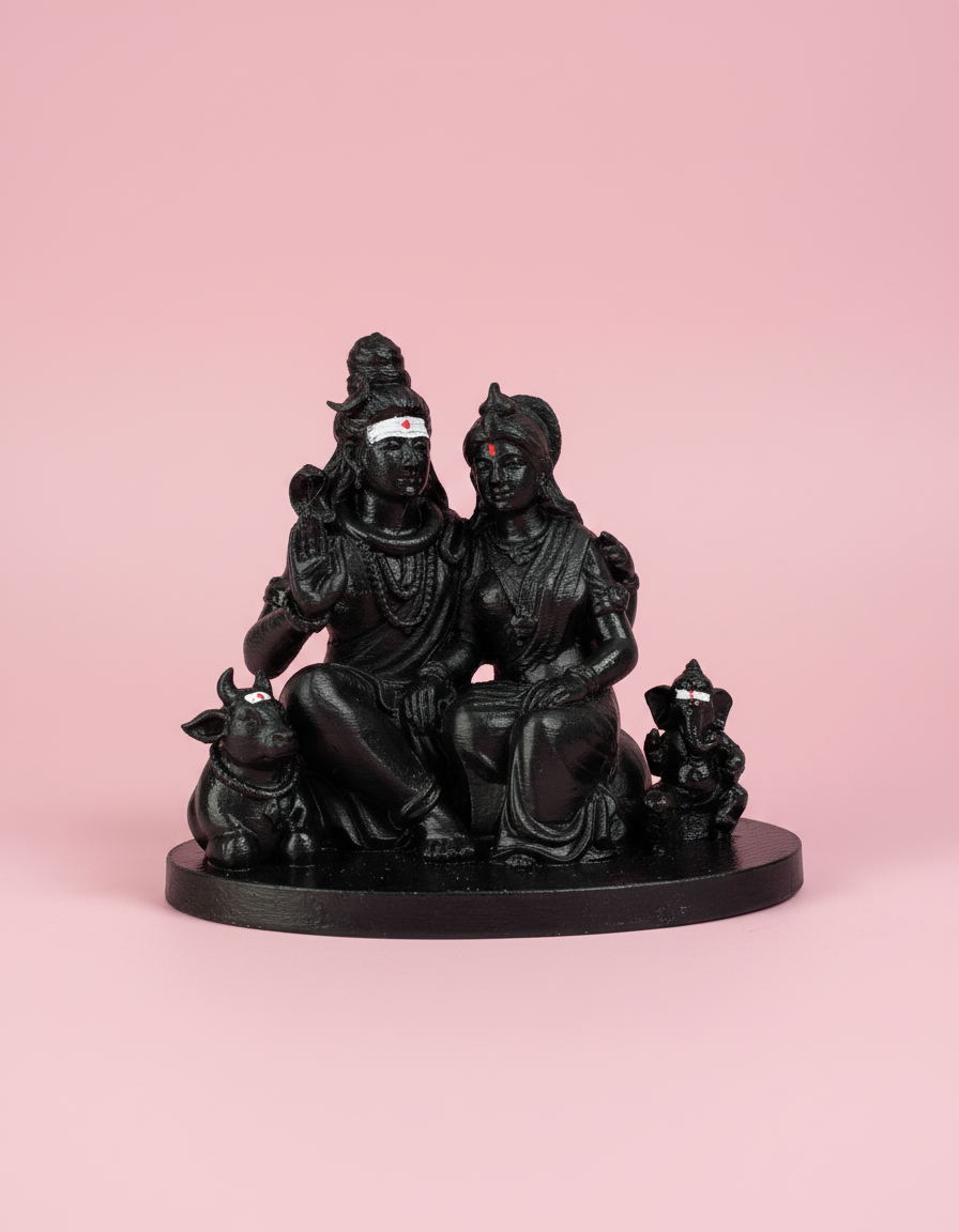Bring divine blessings and spiritual harmony to your home with this beautifully crafted 4-inch Lord Shiva Family (Shiva Parivar) 3D Printed Idol. This sacred idol features Lord Shiva, Goddess Parvati, Lord Ganesha, and Lord Nandi , symbolizing family unity, protection, prosperity, and divine grace. Designed with fine detailing and a smooth finish, this compact idol is perfect for home pooja rooms, office desks, car dashboards, or gifting for spiritual occasions.